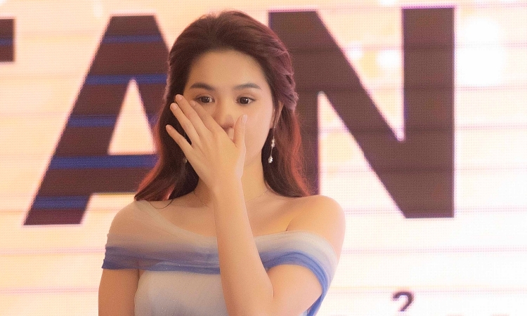 Ngọc Trinh mặc một chiếc váy Do Long màu xanh và trắng vào ngày cô trở thành CEO. Vào tối ngày 25 tháng 9, tại thành phố Hồ Chí Minh .