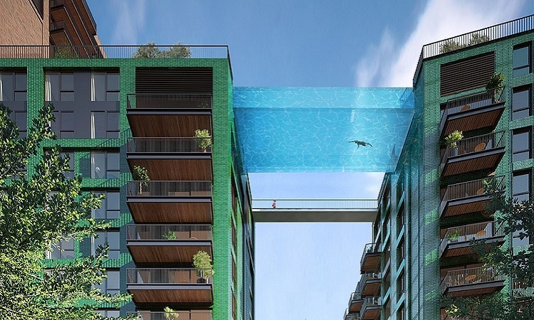 Thiết kế Tianchi. Ảnh: Nhà cửa và tài sản. Thủy cung loại—— .—— đã được nâng hai tháng trước bởi một trong những cần cẩu di động lớn nhất thế giới và nó đã di chuyển 7,596 km từ một công trường xây dựng ở Colorado . Những người yêu thích bơi lội có thể ngâm mình trong vẻ đẹp của trung tâm London, Anh trong khi bơi giữa hai tòa nhà dân cư mới ở Nine Elms ở Vauxhall.