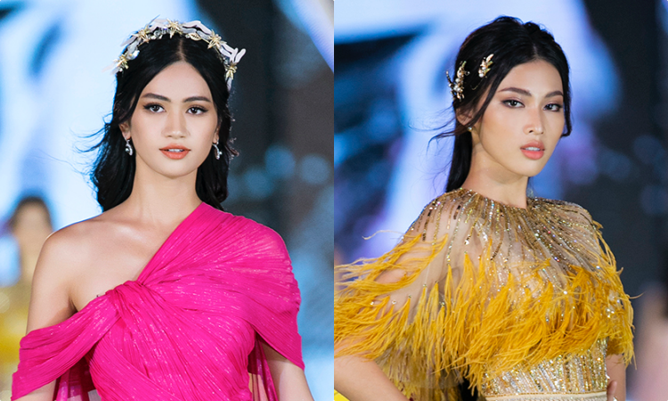 Nguyễn Thị Thu Phương sinh năm 2000, quê ở Bakhnin, lọt top 5 Hoa hậu Thế giới người Việt 2019. Cô diện váy ngắn catwalk và trình diễn thời trang xuất sắc với phần tà bằng voan tạo nên nét thanh lịch khi thể thao.