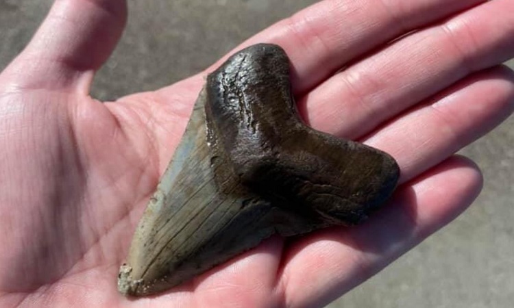 Răng cá mập Megalodon trên bãi biển ở Nam Carolina. Ảnh: Missy Tracewell .