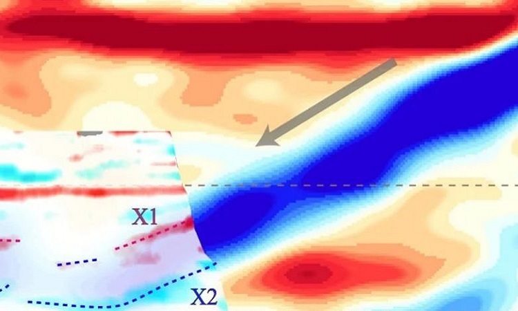 Hình ảnh địa chấn của mảnh vỡ bị hút tới độ sâu 660 km. Nhiếp ảnh: F. Niu / Rice Đại học .