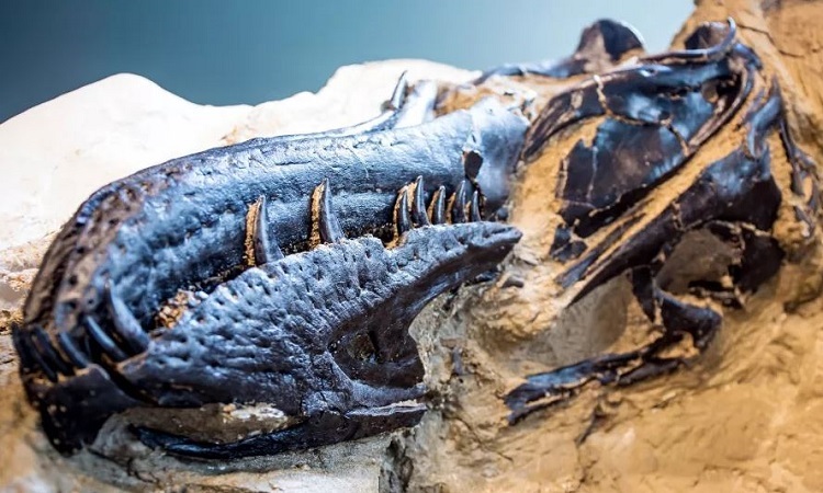 Hóa thạch của hai con khủng long chết nằm chồng lên nhau. Ảnh: Bảo tàng Khoa học Tự nhiên Bắc Carolina.-Theo đánh giá của bảo tàng ngày 17/11, bộ xương hoàn chỉnh của cặp khủng long thời chiến sẽ được trưng bày và nghiên cứu tại Bảo tàng Khoa học Tự nhiên Bắc Carolina ở Raleigh vào năm 2022. Cả hai đều mang vết sẹo chiến đấu.