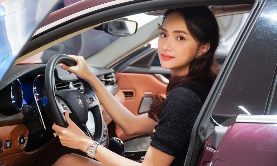 Chiều 14/9, Hương Giang nhận xe dòng Quattroporte Granlusso tại TP.HCM. Cô cho biết mình thích thiết kế xe hơi vì ít “đụng hàng” với nội thất kiểu cách. “Để thuận lợi cho công việc, tôi rất chú trọng đến hệ thống âm thanh vòm. Cô cho biết:” Tôi thường xuyên lái xe đi xem các chương trình, sự kiện. “Trước Hương Giang, ca sĩ Hà Hồ cũng từng mua đồ hiệu này. Hương Giang cho biết nội thất ốp trong ô tô cũng là nơi mình yêu thích nhất. Ảnh: Phương Ngô.