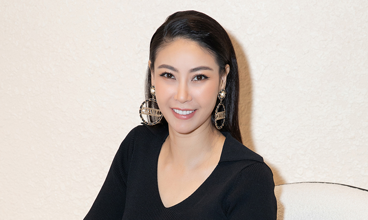 Hoa hậu Hà Kiều Anh diện đầm chữ A tối giản với hoa tai to bản.