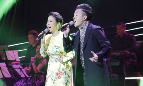 Uyên Linh cũng đã biểu diễn song ca với Minh Quân qua bài hát “Đón xuân”. .