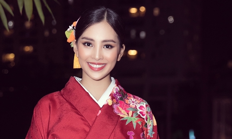 Tiểu Vy mặc kimono, đầu gỗ và để kiểu tóc truyền thống của nữ Nhật Bản. — Người đẹp cho biết cô đã học hỏi được rất nhiều văn hóa và phong tục của Nhật Bản trong suốt hành trình.
