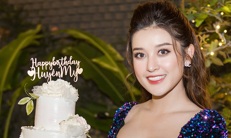 Huyền My diện váy sequin ngắn trên gối, kiểu dáng đơn giản dự tiệc. Huyền My 26 tuổi ngày càng xinh đẹp cùng với việc chăm chỉ chăm sóc da và tập gym nên được nhiều người khen ngợi. Gần đây, cô còn có sở thích chơi golf.