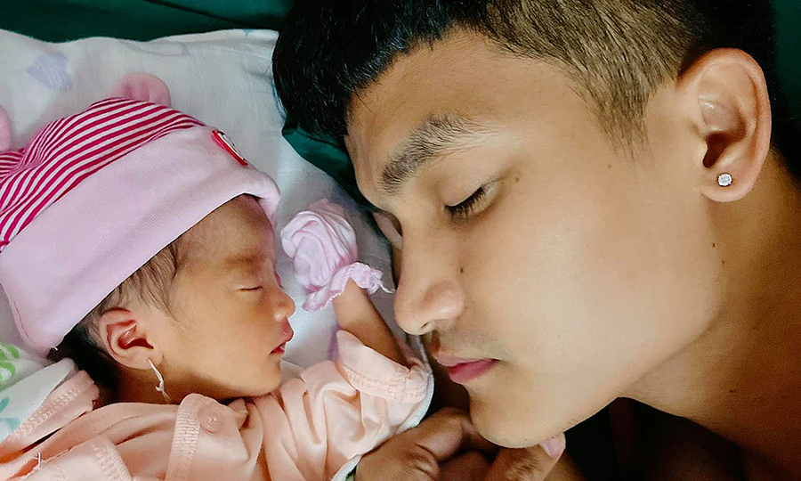 Minnie tên thật là Mạc Linh Đan, thừa hưởng nhiều nét của bố, đặc biệt là chiếc mũi cao. Tôi rất vui vì đứa trẻ cứng cáp và khỏe mạnh. Nam diễn viên lo lắng vì em bé chào đời sớm hơn dự kiến một tháng nên phải nằm lồng kính. Anh nói: “Giờ đây, mỗi ngày đều tràn đầy niềm vui và mỗi ngày đi làm, tôi cảm thấy rất hài lòng về các con của mình.” -Mạc Văn Khoa bên đứa con đầu lòng, Minnie. Ảnh: Vai trò nhà cung cấp.