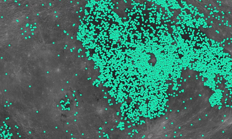 Vị trí của một số miệng núi lửa mới được phát hiện trên mặt trăng. Ảnh: Chen Yang — Trí tuệ nhân tạo (AI) đã phân tích dữ liệu do tàu vũ trụ Trung Quốc thu thập và phát hiện ra hơn 109.000 miệng núi lửa mới ở vĩ độ trung bình và thấp của mặt trăng. Kết quả là, số lượng miệng núi lửa được ghi nhận trên bề mặt của mặt trăng đã tăng hơn mười lần. Nghiên cứu mới được công bố trên tạp chí Nature Communications ngày 22/12.