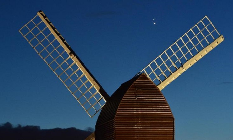 Sao Mộc và Sao Thổ trên cối xay gió Brill, Anh. Ảnh: Jym Dyson .