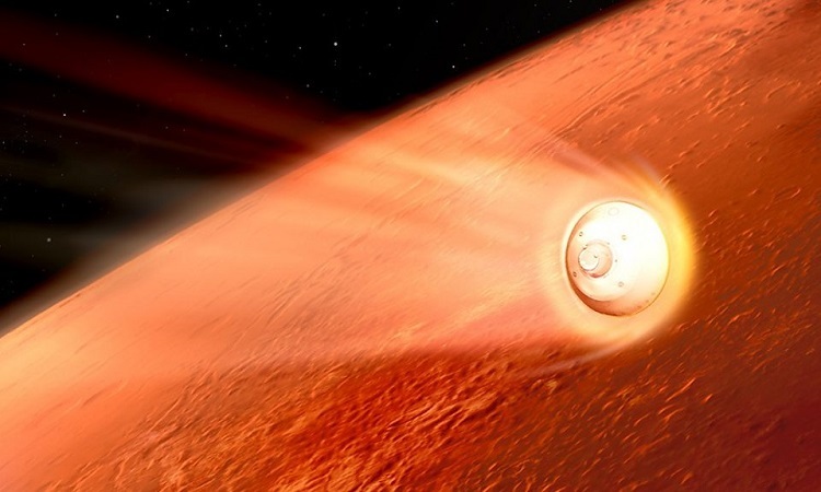 Tấm chắn nhiệt đóng một vai trò rất quan trọng. Khi cabin của robot đi sâu vào bầu khí quyển Sao Hỏa, nó trở nên rất nóng khi nhiệt độ vượt quá 1.000 độ C, nhưng đồng thời, lực cản làm giảm đáng kể tốc độ chìm. Khi chiếc dù siêu thanh mở ra phía sau khoang, tốc độ của nó đã giảm xuống còn 1200 km / h. Kiên đã dùng chiếc dù rộng 21,5m để bay trong một phút.