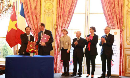 Lễ ký kết có sự tham gia của Nguyễn Phú Trọng, Giám đốc Văn phòng Sở hữu Trí tuệ Quốc gia Pháp. Đại diện của Quốc hội Pháp François de Rugy và các nhà lãnh đạo cấp cao của hai nước.
