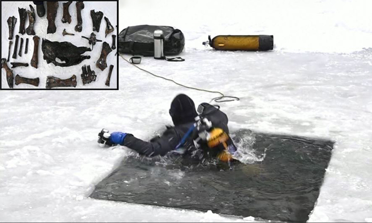Các thợ lặn đã tìm kiếm hóa thạch ở sông Tobol đóng băng. Video: Reuters.