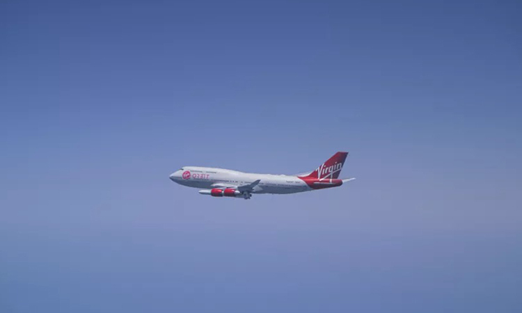 Máy bay Cosmic Girl mang tên lửa LauncherOne bay trên không vào tháng 5 năm 2020. Ảnh: Virgin Orbit .