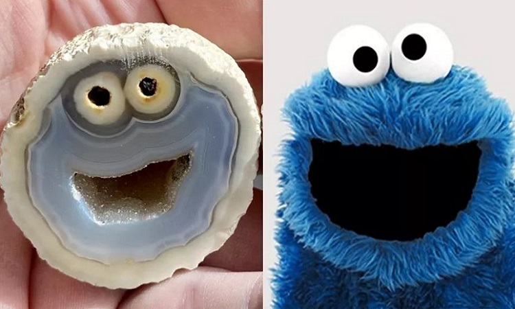 Khối đá mã não và quái vật bánh quy hoạt hình Sesame Street. Ảnh: Kennedy News.