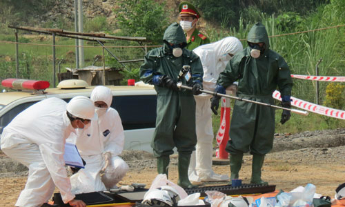 Một cuộc tập trận can thiệp tai nạn phóng xạ do Bộ Khoa học và Công nghệ Thái Lan tổ chức vào năm 2016. Ảnh: Bang .