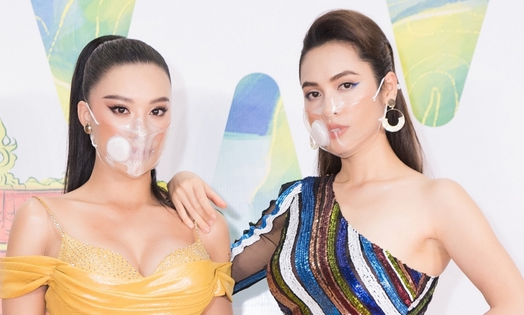 Á hậu của My cũng đeo mặt nạ thời trang trên thảm đỏ. – Khẩu trang xuyên thấu đã trở thành lựa chọn hàng đầu của nhiều mỹ nhân Việt khi tham gia các hoạt động và xem trình diễn thời trang.
