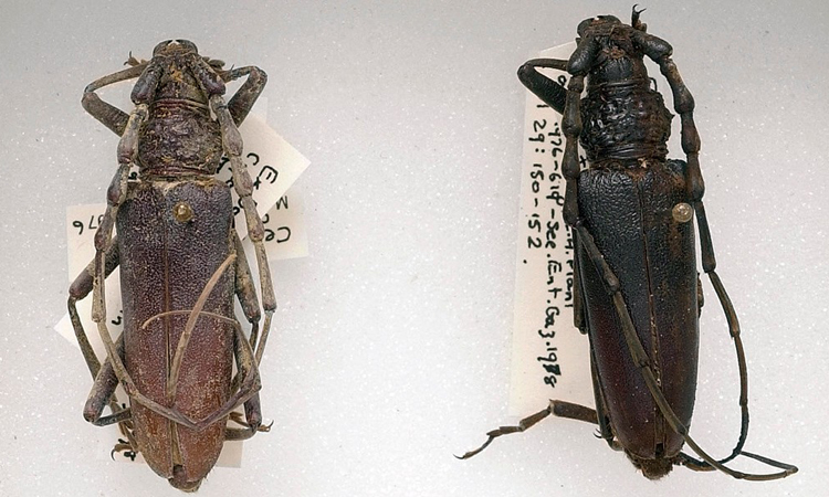 Hai con bọ và dăm gỗ cũ được lưu giữ trong viện bảo tàng. Ảnh: Bảo tàng Lịch sử Tự nhiên, London.
