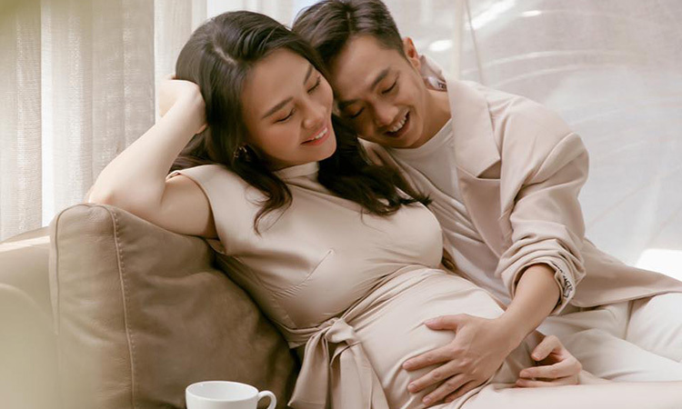 Thu Trang Đàm lộ ảnh bầu bí bên chồng. Ảnh: Vương Huy .