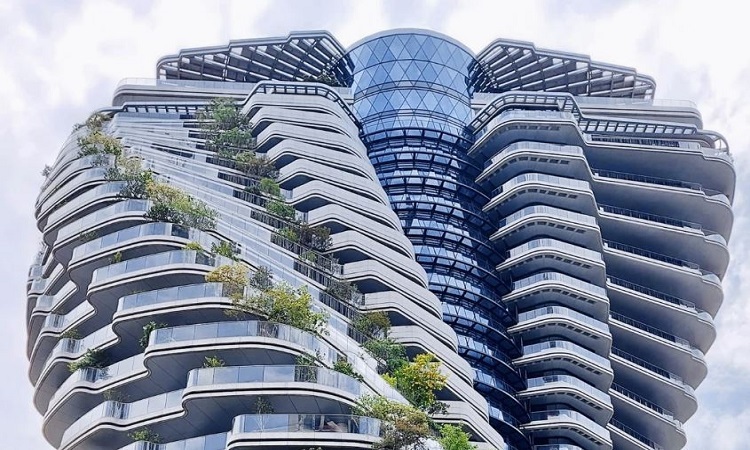 The Island Chuan Vien Heights cao 93,2 m, gồm 21 tầng nổi và 4 tầng ngầm. Thiết kế xoắn lạ mắt của nó được lấy cảm hứng từ cấu trúc chuỗi xoắn kép DNA. Mỗi tầng của tòa nhà được xoay 4,5 độ. Góc quay từ dưới lên trên là 90 độ.