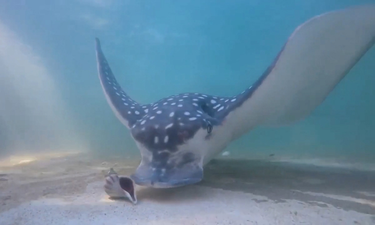 Mặc dù hành vi kiếm ăn này rất phổ biến dưới đáy biển, nhưng vẫn còn nhiều điều bí ẩn trong giới khoa học, đặc biệt là ở các loài động vật lớn. Vỏ hầu như không có dấu vết. Chúng cũng di chuyển nhiều khiến các chuyên gia khó quan sát trực tiếp thói quen ăn uống. Vào ngày 30 tháng 1, SciTechDaily đưa tin (Aetobatus narinari) ăn động vật thân mềm có vỏ cứng trong một môi trường được kiểm soát. Nghiên cứu mới được công bố trên Tạp chí Sinh học và Sinh thái Biển Thực nghiệm.