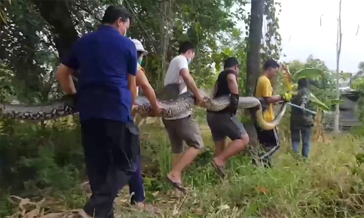 Porntip Rasksasil, 54 tuổi, bất ngờ phát hiện một con trăn rừng lớn đang bò trên bãi cỏ, dọn vườn để trồng chuối. Sinh vật cao 6 mét với trọng lượng 100 kg tự nguyện trốn thoát nhưng Las Cahill đã nhanh chóng triệu tập hàng xóm để ngăn cản.