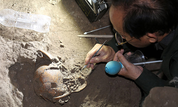 Các nhà khảo cổ học đã phát hiện ra hộp sọ của người tiền sử được tìm thấy trong hang động núi lửa Krong No. Tỉnh nông nghiệp. Ảnh: Bảo tàng Tự nhiên Việt Nam Năm 2018, Bảo tàng Tự nhiên Việt Nam, Viện Hàn lâm Khoa học và Công nghệ Việt Nam, Tiến sĩ La Thế Phúc đã công bố phát hiện hàng chục ngàn hiện vật bao gồm đồ gốm, đồ đá, sơn, răng động vật, xương sọ … ở Krone ( Krong) Phát hiện trong hang động của núi lửa là một bằng chứng khoa học có giá trị và chi tiết hơn để xem xét và công nhận danh hiệu thế giới của Công viên địa chất Danong nộp cho UNESCO .