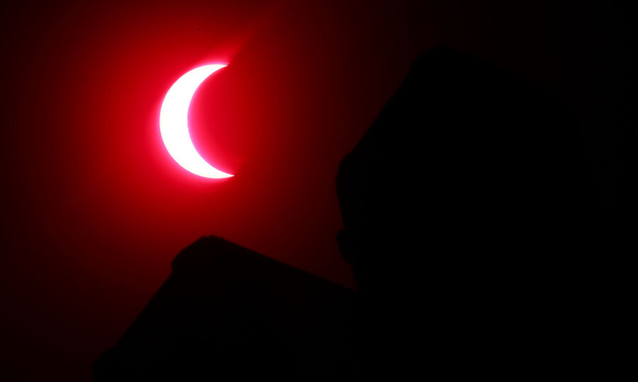 Nguyệt thực trên mái nhà thờ lúc 14:15 .