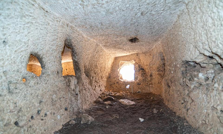 Lối vào dẫn đến nhiều buồng đá, có thể có ý nghĩa tôn giáo. Một số lối vào chỉ dẫn đến một phòng, lối vào khác dẫn đến một cụm gồm hai, ba hoặc năm phòng. Căn phòng được kết nối bởi một cánh cửa hẹp thông qua một bức tường đá.