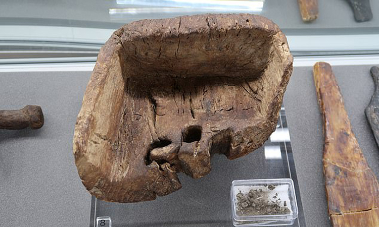 Một khay vuông làm bằng gỗ và bơ từ thời đồ sắt. Ảnh: The Scotsman-The Scotsman báo cáo vào ngày 20 tháng 7 rằng các nhà khoa học đã phát hiện ra một tấm gỗ vuông 2500 năm tuổi ở dưới đáy hồ Tay. Trong thời đại đồ sắt, người xưa đã xây dựng ít nhất 17 ngôi nhà gỗ trong hồ. Ngôi nhà sau đó sụp đổ xuống đáy hồ, nơi chôn cất nhiều di tích văn hóa cổ xưa.