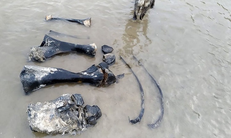 Khi lớp băng vĩnh cửu ở Yamal tan chảy, xương của voi ma mút bị lộ ra. Ảnh: Siberian Times.