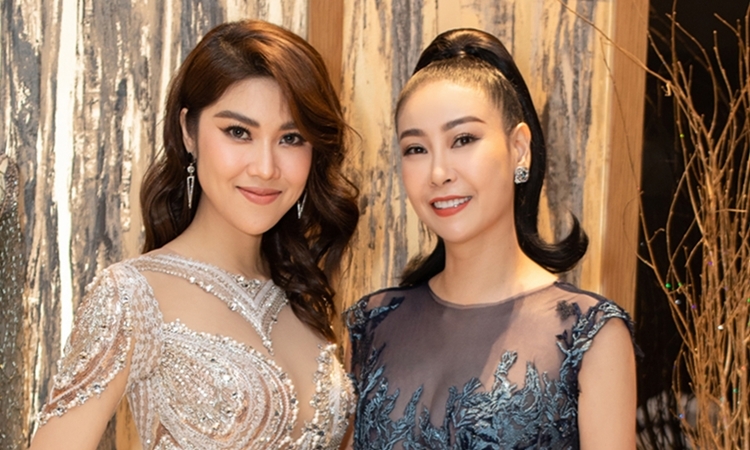 Người mẫu chụp ảnh chung với bạn của cô (giữa) và nhà thiết kế Hoàng Hải. Người bạn của cô đã thắng cuộc đấu giá Lê Quyền Áo dài và có thể biểu diễn trong một buổi biểu diễn cách đây một tuần (12.000 USD).