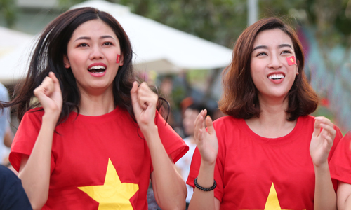 Chung kết Thanh Tú (trái) và Hoa hậu Mỹ Linh đã ăn mừng bàn thắng của Minh Vương. Hai người đẹp đã đến Thường Châu (Trung Quốc) để khuyến khích U23 Việt Nam tham gia Giải vô địch U23 châu Á. Nghệ sĩ Trung Anh hối tiếc, Bởi vì nếu Xuân Mạnh gặp may mắn hơn trong quá trình ghi bàn của Hàn Quốc, tỷ số sẽ tăng lên 3-2. “Bóng đá nam không phải là thế mạnh của chúng tôi ở châu Á. Đó là một phép lạ để lọt vào bán kết và đối mặt với cơ hội giành huy chương. Tôi rất biết ơn những nỗ lực của người chơi. “Họa sĩ nói.”