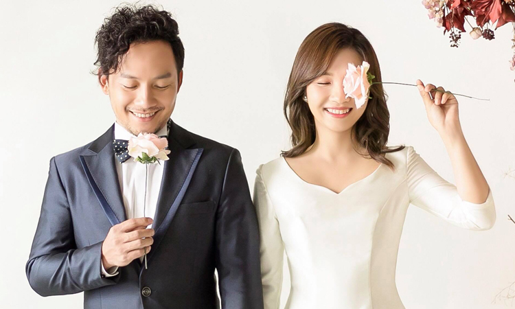 Chàng rapper và người vợ ngọt ngào trong bức ảnh cưới.