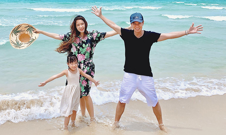 Vợ chồng Lý Hải và con gái của Sunny đang chơi đùa trong sóng. Trẻ em Li Hai sườn sắp trở lại trường học, vì vậy anh đã cho các em một phần thưởng du lịch vào ngày 13 tháng Năm.