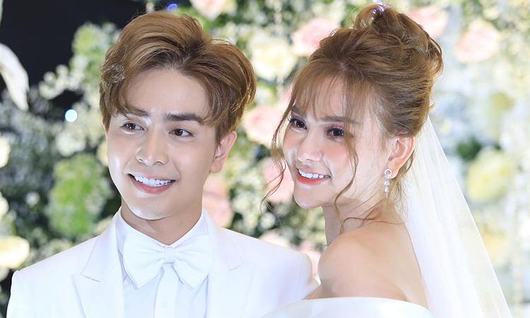 Trước đó, thứ Năm (Thu Thúy) và Jin Nguyen (Kin Nguyen) Lễ cắt bánh và uống rượu đã diễn ra – cô dâu mặc váy cưới của nhà thiết kế Lâm Tâm.
