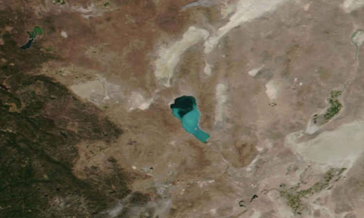 Ảnh vệ tinh về Hồ Kim tự tháp ngày 13/8. Ảnh: JPSS .