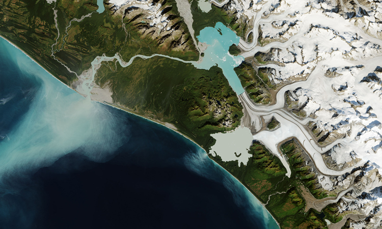 Kể từ khi hình ảnh vệ tinh được chụp, băng đã thu nhỏ lại. Vào đỉnh cao của Kỷ băng hà nhỏ, cao nguyên rộng lớn nằm dọc theo bờ biển Thái Bình Dương. Sau đó, sông băng đã phục hồi đáng kể. Tảng băng (một tảng đá chồng chất ở rìa sông băng) gần bờ biển đóng vai trò như một con đập giữ nước, tạo thành một hồ nước trên rìa sông băng. Trong bức ảnh năm 2019, dải băng nhô ra rõ ràng trên mặt hồ. Trong bức ảnh năm 1984, nó là tàn tích của nhánh sông băng.