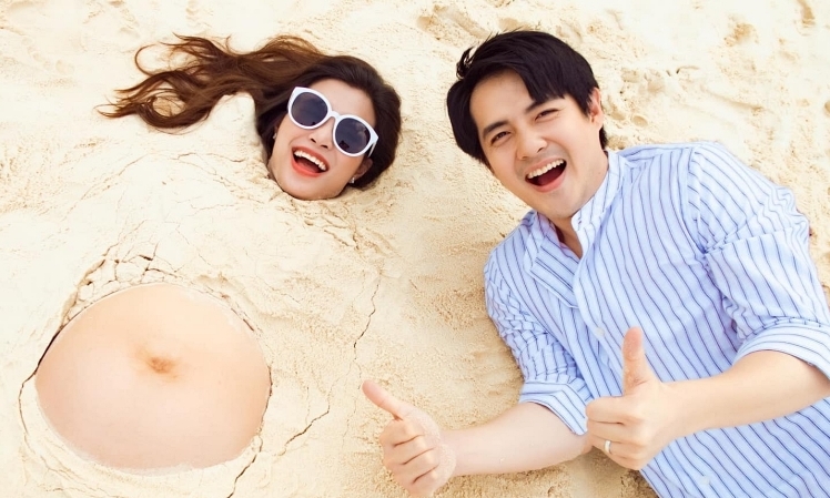 Khi đi du lịch Phú Quốc vào đầu tháng 8, nữ ca sĩ chụp ảnh cùng Cát và bụng bầu bảy tháng.