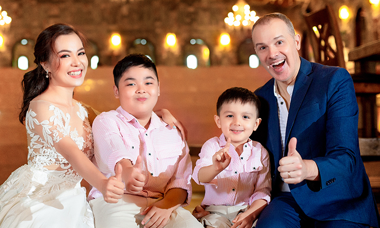Bo (thứ hai từ phải sang), con trai của cặp đôi, năm tuổi. Thanh Thảo có một con trai 10 tuổi tên Gia Khánh.